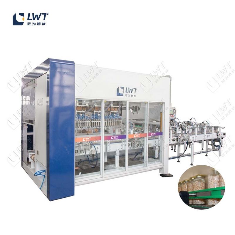 Ta maszyna nadaje się do szklanego słoika, żelaznych puszek, plastikowych słoików, dużych butelek i tak dalej.,Włóż sos sojowy, mięso, kurczak, ryby i tak dalej, wszelkiego rodzaju produkty stałe, konserwacje, wymiar i wypełnienie.